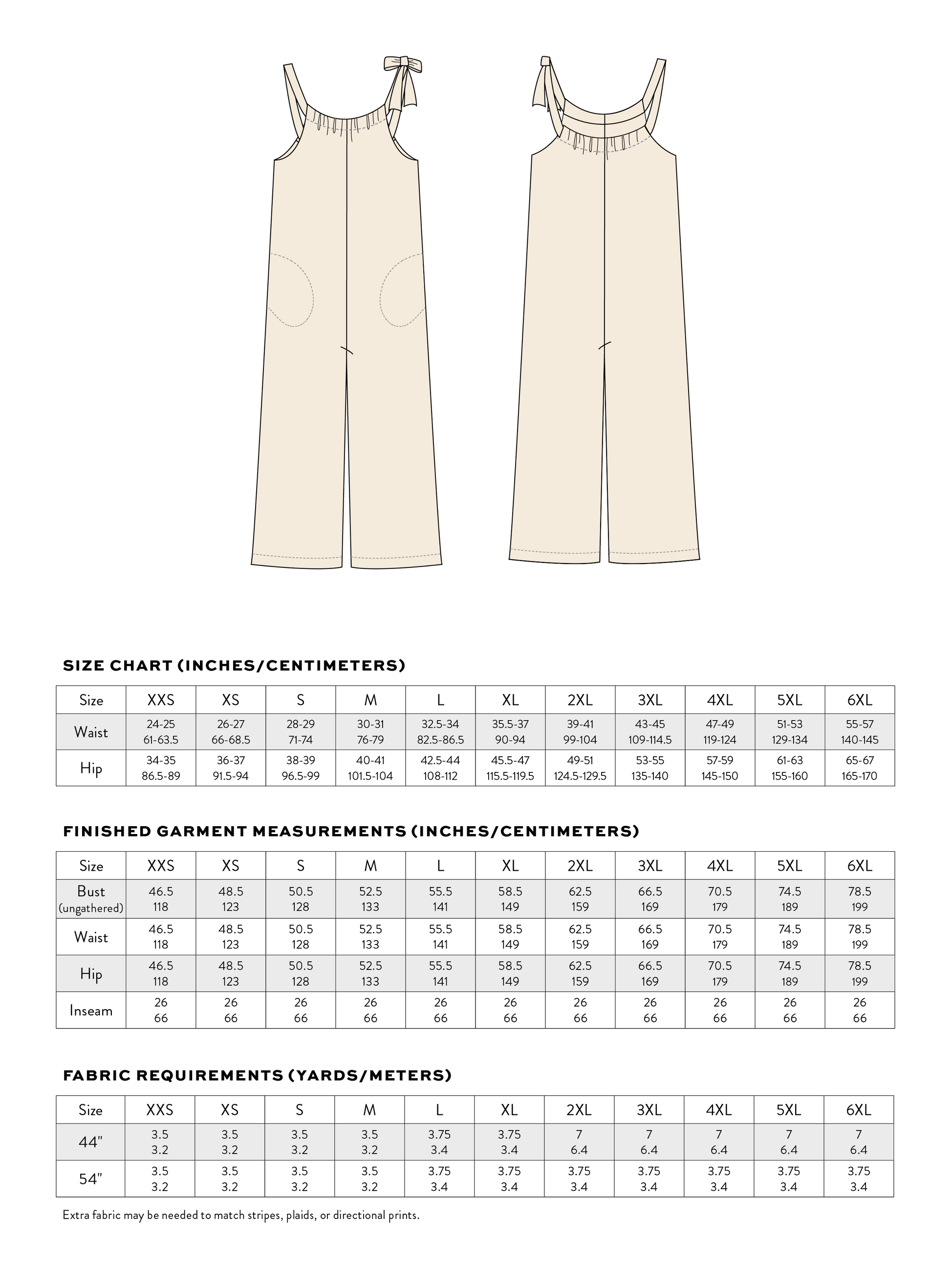 The Cabana Tie Playsuit is an easy to sew, effortless jumpsuit. The fit is slightly oversized and relaxed with wide, voluminous legs and a dropped crotch. It includes inseam pockets and a drawstring style shoulder strap that can be adjusted to your desired length and finished off in a large bow or knot.