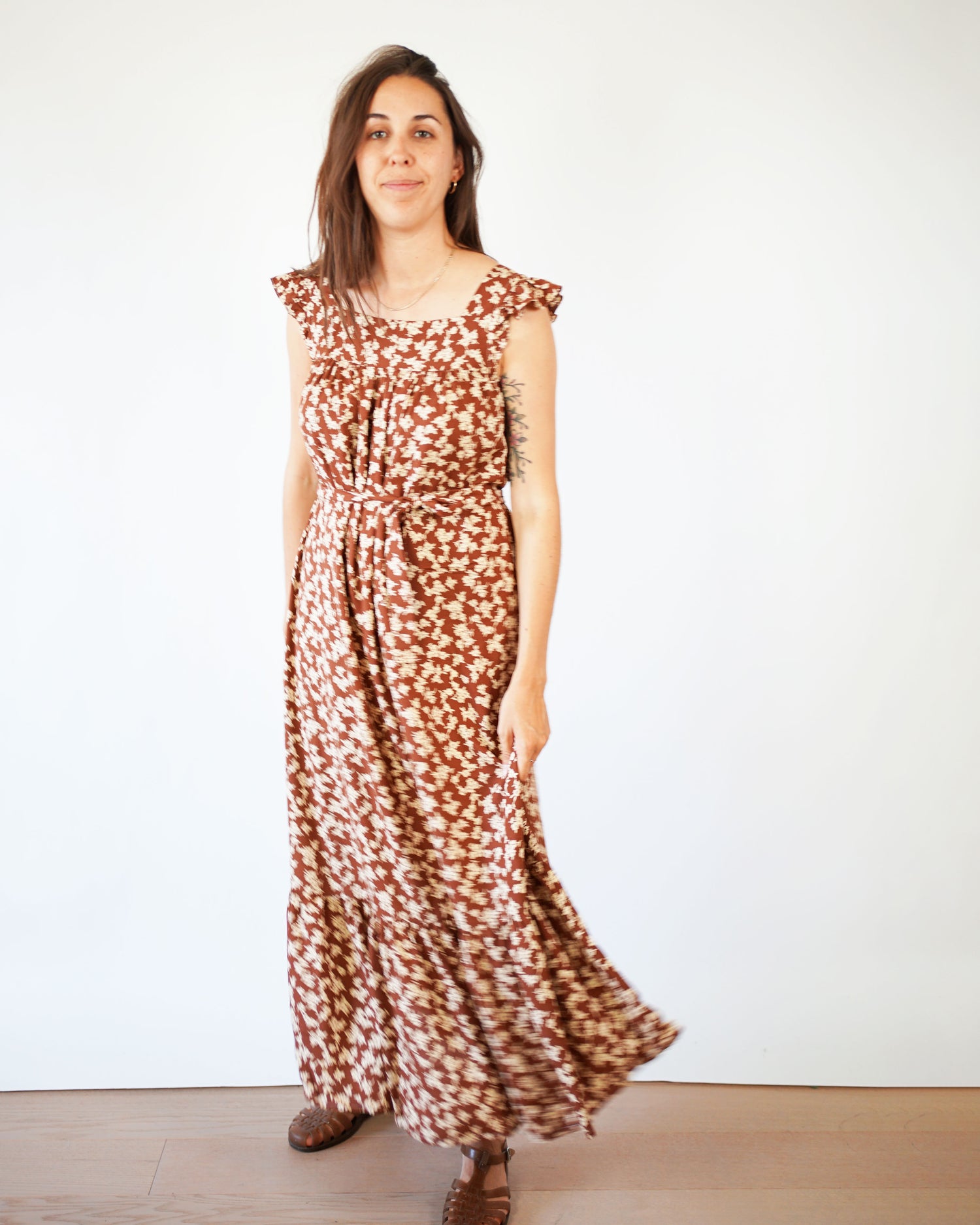 We were inspired by a dreamy Christy Dawn look and knew it was a super easy dupe using our Champagne Field Dress pattern as a starting point.