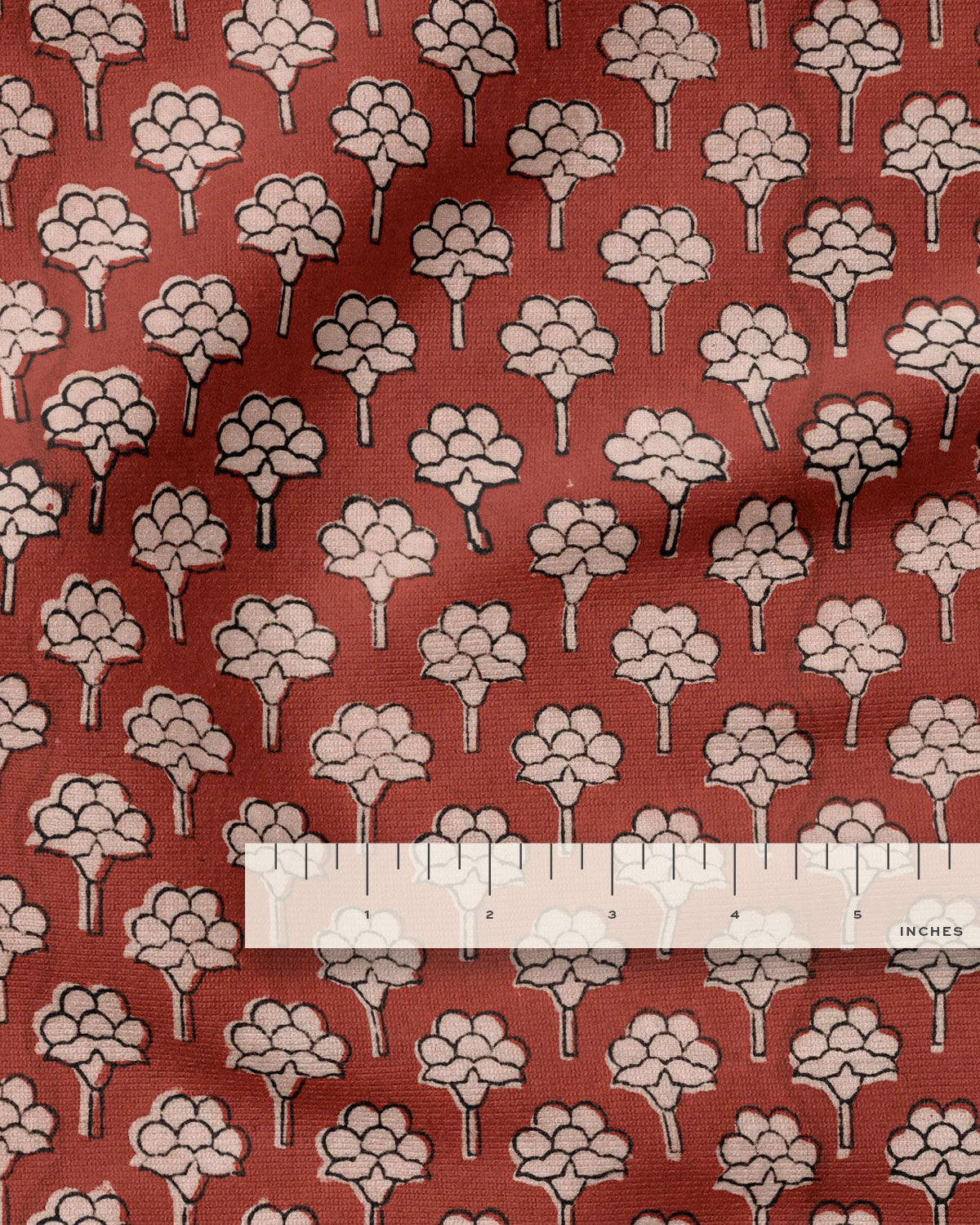 Hand Block Print Cotton Fabric by the Yard - Lightweight Summer fabric