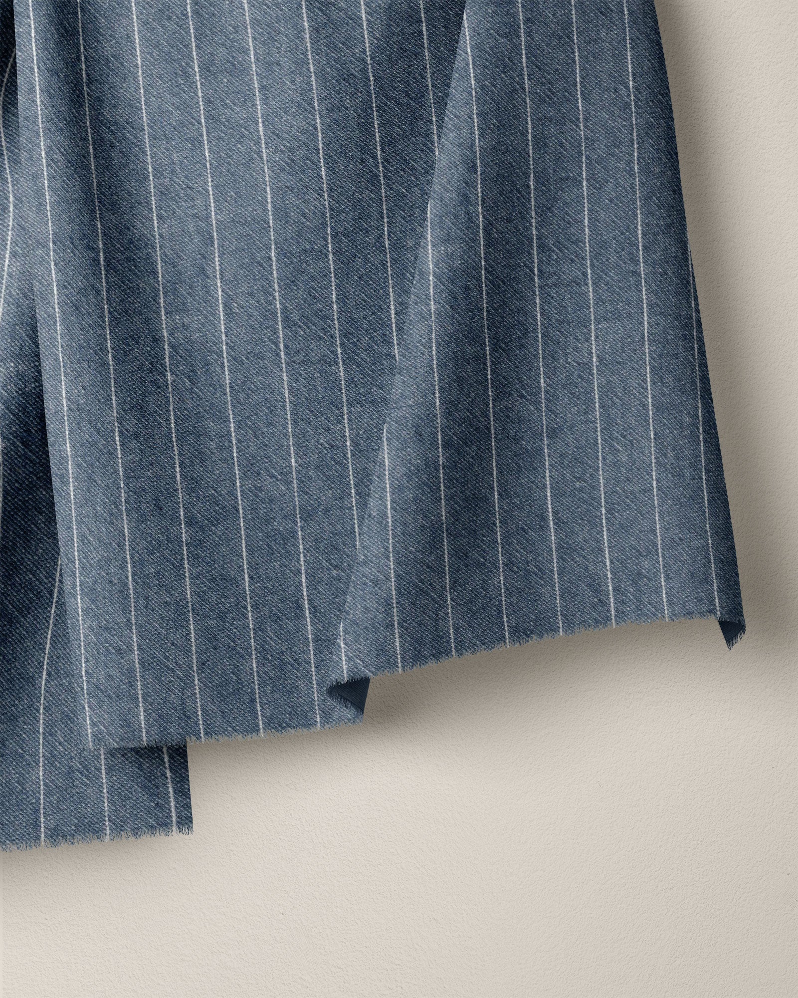 Our flax linen cotton denim in classic pinstripe is everything we want in an everyday essential—easy, breathable, and effortlessly stylish. While the word denim might bring to mind stiff jeans, this is not that. Thanks to its unique blend of flax linen and cotton and a looser, more open weave, this fabric is soft, breathable, and has a beautiful fluid drape. It washes up to be soft and bouncy with a rustic lived in feel. At 200 GSM, it's on the lighter side of midweight, which means it's sturdy enough to hold its shape but light enough to keep you cool. The timeless pin stripe pattern, spaced evenly at ¾" (2cm) apart, gives it a crisp, tailored look that adds instant polish to any handmade piece. It's easy to sew, beginner-friendly, and a joy to wear.