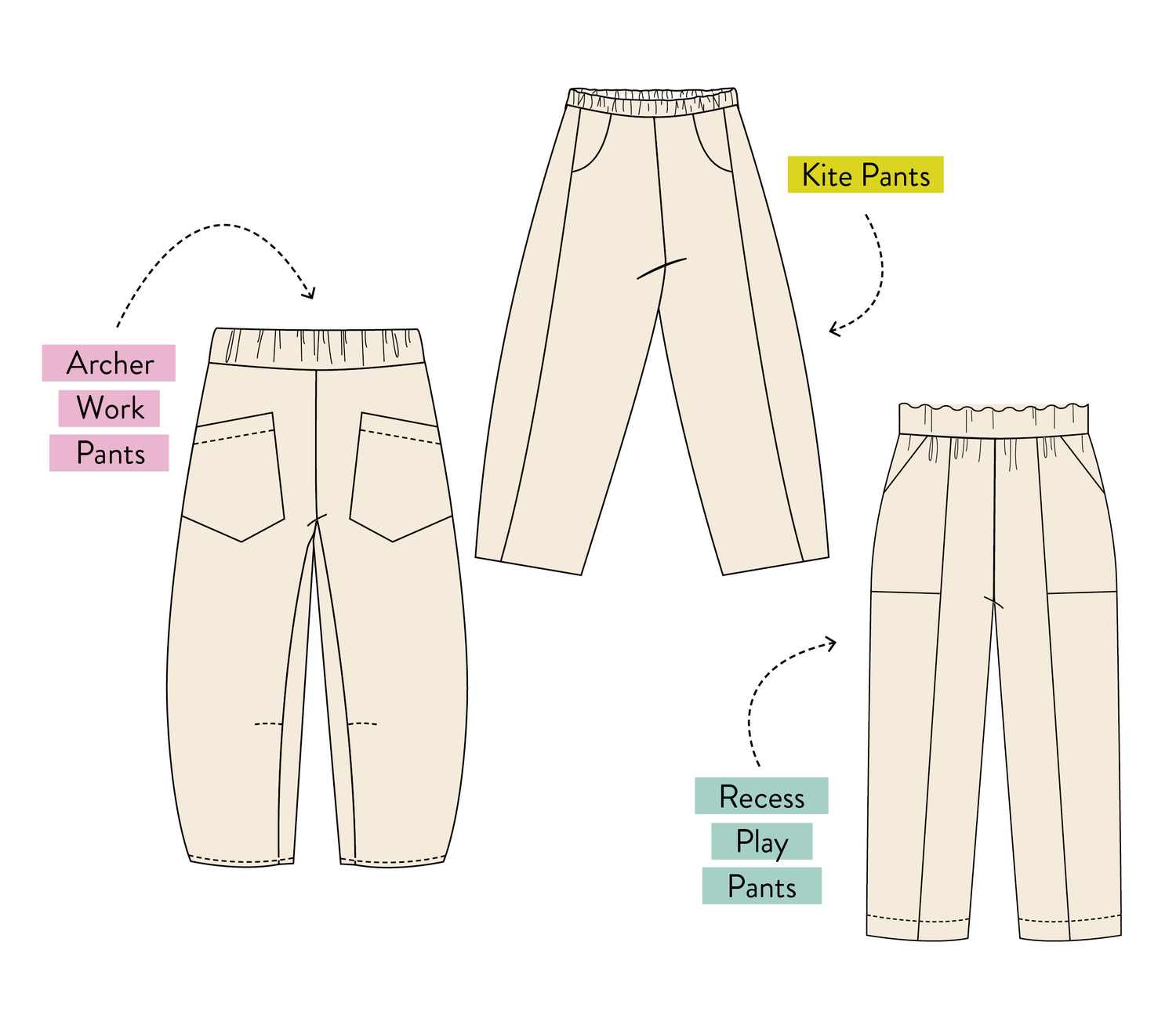 Each of our pants patterns are drafted differently to give a unique fit and overall style. We want to make sure your sewing experience is set up for success by choosing the right pattern for the item you would like to make.