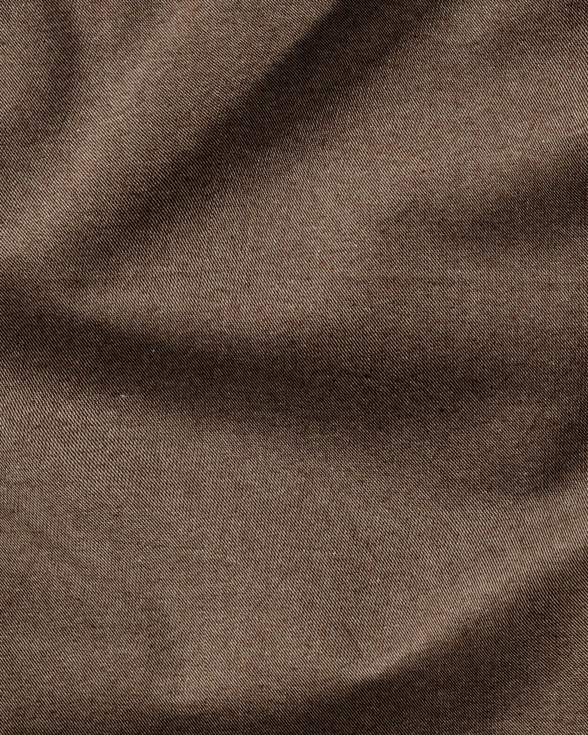 Machine wash cold with like colors. Tumble dry low or hang to dry. Warm iron if needed. This denim will soften beautifully over time while maintaining its durable structure and rich natural tone.